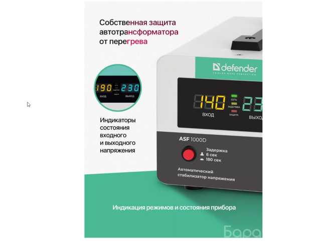 Стабилизатор также оснащен удобным табло, на котором вы можете увидеть текущее значение напряжения. Это очень полезно, так как вы всегда будете в курсе состояния вашей электрической сети. Кроме того, табло позволяет легко контролировать и регулировать напряжение вручную, если требуется.